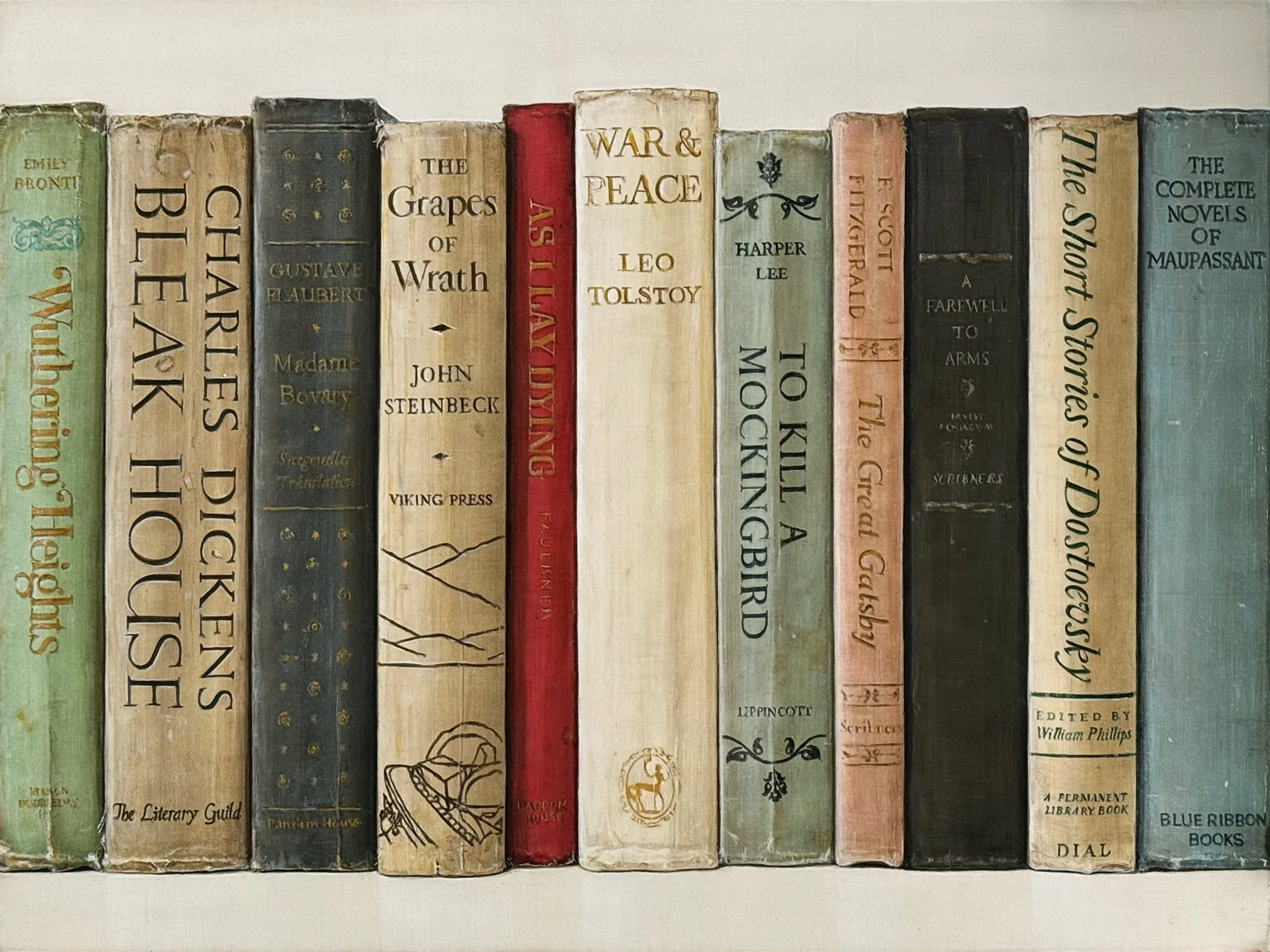 In The Library is an exhibition of artworks that honor these objects. Each piece either depicts or incorporates books, reconnecting viewers with their own intimate experiences of reading. Literature, whether fiction or nonfiction, forms who we are and how we move through the world. By reimagining books as visual art, the exhibition invites us to reflect on what we choose to feed our minds. Our hope is that visitors leave with a renewed awareness of the stories and information that shape their lives.